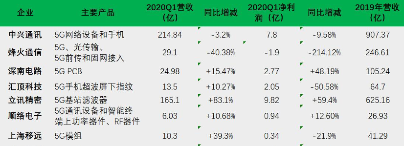 2020年Q1  5G部分上市公司業(yè)績(jī)狀況