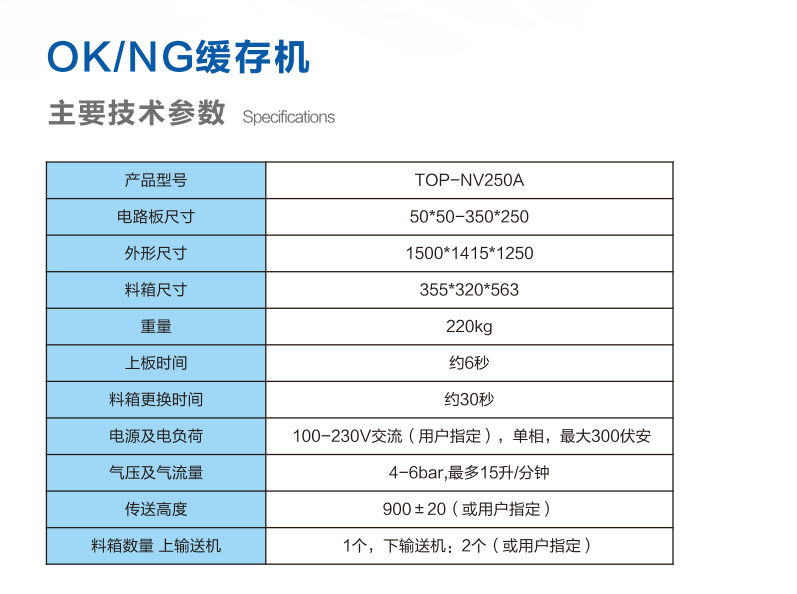 OK/NG冷卻式緩存機(jī)功能特點:	大屏人機(jī)觸摸屏控制界面、人體對話變得更簡單。	集暫存、直通、上板、下板功能于一體;	伺候馬達(dá)+進(jìn)口滾珠絲桿+齒條測距:升降定位,精確、可靠、永無